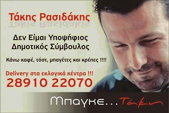 Ο Τάκης Ρασιδάκης έχει μαι βασική διαφορά από την Κουτσή Μαρία: δεν είναι υποψήφιος δημοτικός σύμβουλος. Φτιάχνει καφέ, τοστ, μπαγκέτες και κρέπες. Είτε είναι υπαρκτός επαγγελματίας είτε τρολ, σίγουτα είναι θεός.