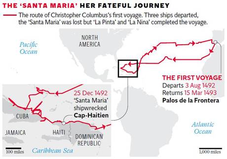 Σύμφωνα με άρθρο του David Keys, ειδικού συντάκτη επί αρχαιολογικών θεμάτων, περισσότερα από 500 χρόνια μετά το ναυάγιο της ναυαρχίδας του Χριστόφορου Κολόμπου στην Καραϊβική, ερευνητές αρχαιολόγοι πιστεύουν πως ανακάλυψαν τα συντρίμιμα της εδώ και αιώνες χαμένης Santa Maria, στο βυθό της θάλασσας που βρίσκεται ανοιχτά των βορείων ακτών της Αϊτής. Αν αυτό επιβεβαιωθεί, θα πρόκειται για μία από τις σημαντικότερες θαλάσσιες αρχαιολογικές ανακαλύψεις.