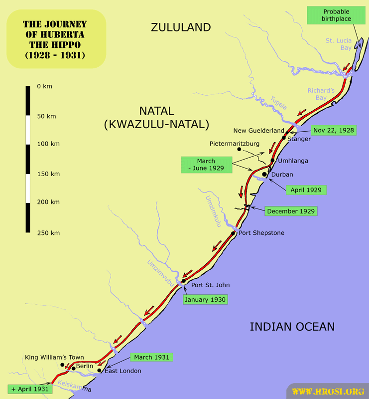 Ακούγεται σαν παιδικό παραμύθι (και όντως, έγινε βιβλίο για παιδιά, το 1961, με τίτλο Hubert, the Travelling Hippopotamus, από τον Edmund Lindop) αλλά η ιστορία είναι πέρα για πέρα αληθινή. Ξεκινά στην περιοχή Ζουλουλάνδη της Νότιας Αφρικής, στα ανατολικά παράλια της ηπείρου, όταν μια μέρα του 1928, μια νεαρή ιπποποταμίνα ξέκοψε από την «ομάδα» της και τράβηξε νότια. Είναι άγνωστος ο λόγος που έσπρωξε την Χαμπέρτα να ξεκινήσει το μακρύ της ταξίδι των χιλίων χιλιομέτρων. Οι ιπποπόταμοι στη διάρκεια της μέρας χουζουρεύουν μέσα στα νερά όλοι μαζί, και βγαίνουν για βοσκή όταν πέφτει το σκοτάδι και δροσίζει. Τότε, βοσκά κάθε ζώο μόνο του. Υπάρχει η εκδοχή πως η Χαμπέρτα είδε την οικογένειά της να σκοτώνεται από κυνηγούς και γι’ αυτό προσπάθησε να φύγει όσο μακρύτερα γινόταν. Ή ίσως να αποφάσισε να αναζητήσει καλύτερα βοσκοτόπια. Ή μπορεί να ήταν και ο Μαγγελάνος του είδους της. Κανείς δεν ξέρει.
