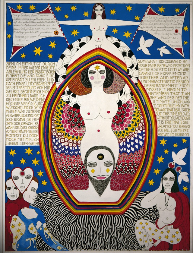 “Love the Stranger” (1981), 142 x 102.5 cm, Privatsammlung Schweiz, (© Dorothy Iannone, photo by Friedrich Rosenstiel)
