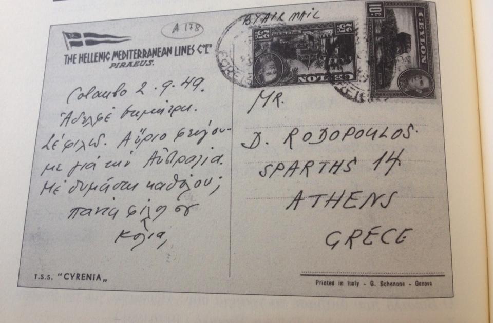 Χρόνια σιωπής. Θυμόμουνα εκείνο που κάποτε είπε ο αδελφός σου: «Σκοπός είναι να έχεις ταλέντο ανθρώπου». Κι απορούσα: Πώς γίνεται, ο άνθρωπος που ξεστόμισε αυτόν τον πάνσοφο λόγο, να χάσει το ανθρώπινο ταλέντο του; Χρόνια σιωπής. Κι έξαφνα, γράμμα από το Πόρτο-Φίνο, από το Κολόμπο, από την Αουστράλια. Οι θάλασσες ξαναπήραν το βαθυκύανο χρώμα τους; Ο ουρανός ξανάγινε γαλάζιος; Από ποιο μακρινό ταξίδι γυρίζει πάλι, κοντά μας, ο χαμένος αδελφός;