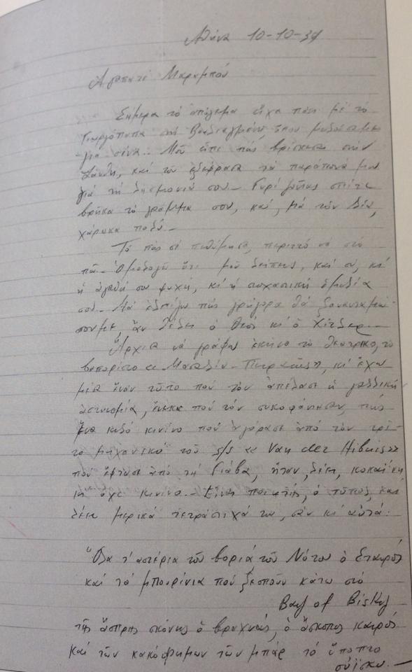 Γράφε μου. Γράφε μου συχνά. Όσο μπορείς. Αν άργησα να σου απαντήσω δε φταίω. Του Βαγγελάκη έγραψα χθες ευχαριστώντας.