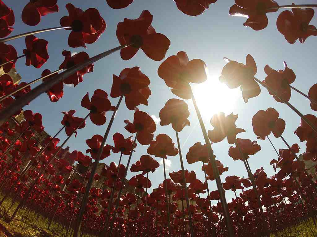 Όποιος, λοιπόν, επισκεφθεί το Λονδίνο τους επόμενους μήνες και μέχρι τις 11 Νοεμβρίου, θα δει μια θάλασσα από άλικες πήλινες παπαρούνες να ξεχύνεται από τα τείχη του εμβληματικού Πύργου, —ενός από τα πιο απόρθητα φρούρια της Ευρώπης, που χτίστηκε πριν περίπου 1.000 χρόνια από τον Δούκα Γουλιέλμο της Νορμανδίας—, και να απλώνεται πάνω στην τάφρο. Κάθε βράδυ, θα ακούγεται το Τελευταίο Σάλπισμα και θα διαβάζονται ονόματα των πεσόντων, σε μια μικρή και νηφάλια τελετή που θα τιμά την μνήμη των θυμάτων ενός από τους πιο φονικούς πολέμους που έζησε η ανθρωπότητα.
