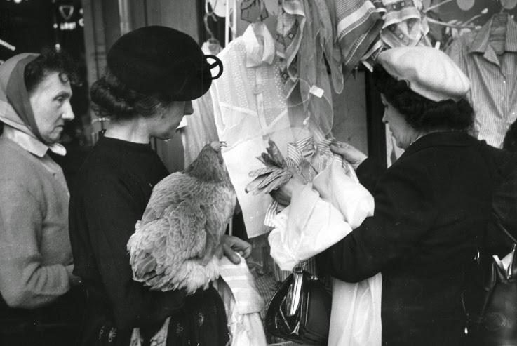 Το περιοδικό LIFE και η φωτογράφος Nina Leen ανακάλυψαν στο Παρίσι τη Μαργκερίτ. Δεν γνωρίζουμε τίποτε άλλο για τη γυναίκα αυτή. Το μόνο που ξέρουμε είναι ότι η Μαργκερίτ έβγαζε βόλτα την αγαπημένη της κότα, τακτικά, σαν να ήταν σκύλος. Καμιά φορά, δεν χρειάζονται άλλες εξηγήσεις. Αρκεί να χαλαρώσουμε και να απολαύσουμε το παράδοξο, την εκκεντρικότητα. Ή μάλλον, εν προκειμένω, την εκκεντρικότα Της Γυναίκας με την Κότα.