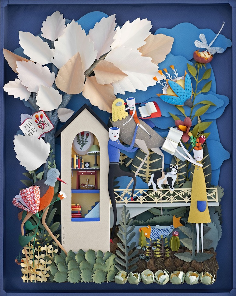 Τα χάρτινα γλυπτά της εντυπωσιάζουν με την λεπτομέρειά τους και την δεξιοτεχνία με την οποία είναι φτιαγμένα. Παραθέτουμε φωτογραφίες από το νέο έργο της με τίτλο Ο Κήπος των Βιβλίων, καθώς και από άλλα, παλιότερα. Πολύ περισσότερα έργα (δικά της και άλλων καλλιτεχνών που ειδικεύονται στην χαρτοκοπτική) μπορεί να βρει κανείς στο προσωπικό της blog, Art is a Way.