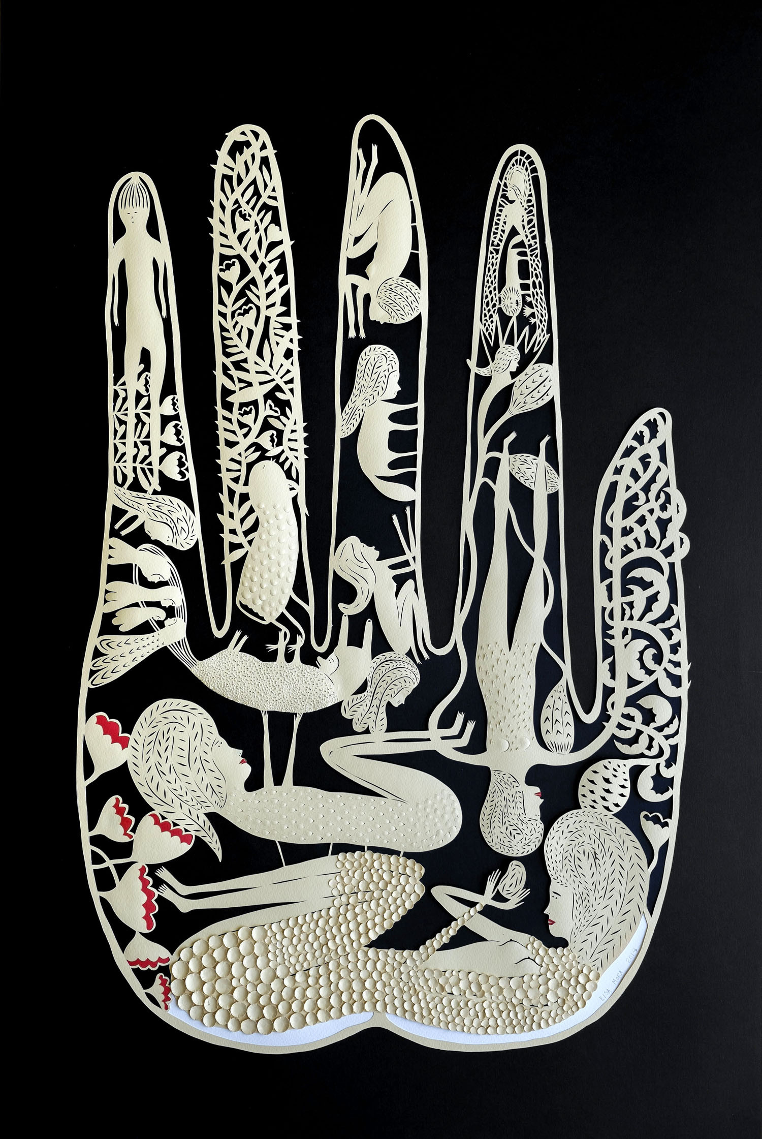 Η καλλιτέχνις Elsa Mora φτιάχνει πρωτότυπες ανάγλυφες δημιουργίες από χαρτί. Για τα έργα της, που συχνά είναι τρισδιάστατα, χρησιμοποιεί αποκλειστικά οικολογικό χαρτί, σε ένα πλήθος χρωμάτων, και κόλλα. Πολλά από αυτά εικονογραφούν βιβλία, άλλα έχουν δημιουργηθεί κατά παραγγελία πελατών. Η δουλειά της εκτίθεται αυτό τον καιρό στο Racine Art Museum του Ουισκόνσιν.