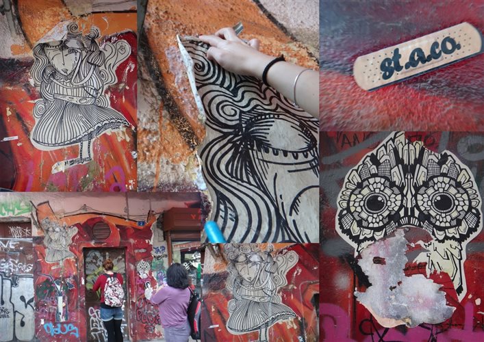 Έχουν συνηθίσει να συγκεντρώνουν πάνω τους περίεργα βλέμματα, να προκαλούν επιφωνήματα έκπληξης, να ακούν επιπλήξεις. Έχουν ωστόσο πλήρη συναίσθηση της ασυνήθιστης εικόνας που παρουσιάζουν έτσι όπως είναι πεσμένοι πάνω σε έναν ζωγραφισμένο τοίχο κρατώντας σύριγγες, νυστέρια, πινέλα. Πολύ ήρεμα εξηγούν τι ακριβώς κάνουν: είναι μια ομάδα συντηρητών, η οποία προσφέρει τις «πρώτες βοήθειες» ή μια γερή ανάσα ζωής στα έργα τέχνης του δρόμου. Στα γκραφίτι, στα έργα της street art, στις δημόσιες τοιχογραφίες. Μπορεί να τους έχετε πετύχει στα Εξάρχεια, στο Γκάζι, στου Ψυρρή, στην Πλάκα, στο Μεταξουργείο όπου συχνάζουν με τα εργαλεία τους. Είναι νέοι, συνήθως γύρω στα 20-25, αλλά βλέπεις και ορισμένους μεγαλύτερους να ακολουθούν από κοντά. Το όνομά τους είναι «st.a.co.».