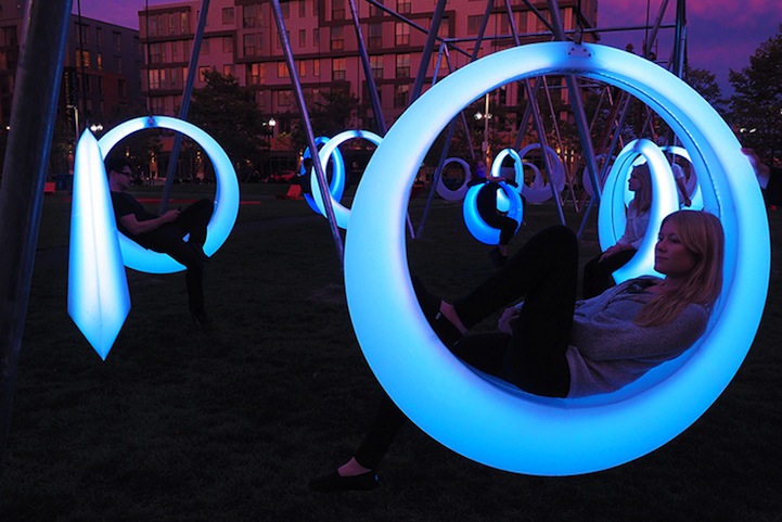 Στο πλαίσιο, λοιπόν, αυτού του νέου είδους αστικού πάρκου, εντάσσεται η νέα η διαδραστική εγκατάσταση που ονομάζεται Swing Time η οποία προσκαλεί τους κατοίκους τής Βοστώνης να ρεμβάσουν κάνοντας κούνια μέσα σε ένα φωτεινό δαχτυλίδι, έργο της ομάδας αρχιτεκτόνων Höweler + Yoon Architecture.