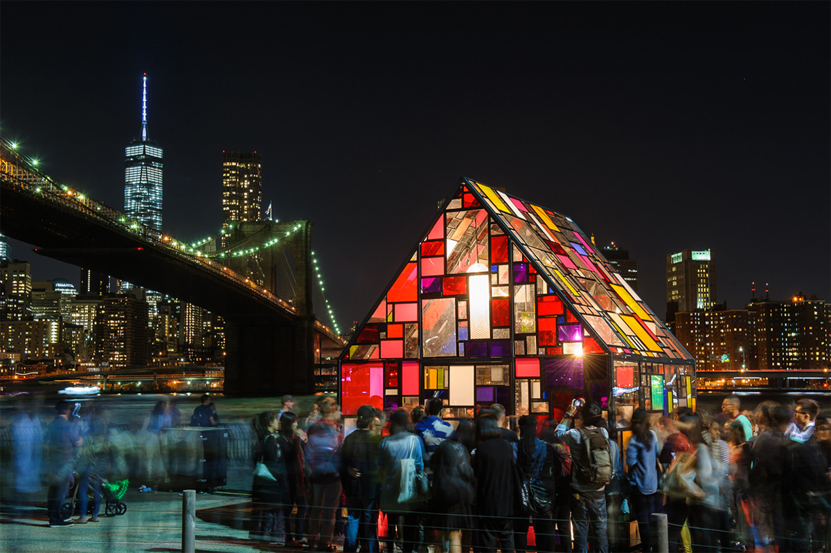 Ο αμερικανός γλύπτης Tom Fruin και η καλλιτεχνική ομάδα CoreArt συνεργάστηκαν σε μια εικαστική παρέμβαση με τίτλο Reflection/Kolonihavehus, η οποία στήθηκε στη σκιά της γέφυρας του Μπρούκλιν, στο πλαίσιο του Φεστιβάλ Τέχνης Dumbo που διοργανώθηκε στη Νέα Υόρκη, πριν λίγες εβδομάδες, στις 27, 28 και 29 του Σεπτεμβρίου.