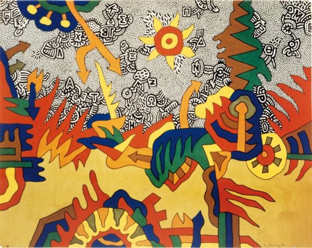 Και βέβαια στο Παρίσι επηρεάστηκε από την γενικευμένη κίνηση γραφισμού που χαρακτηρίζει τη δεκαετία του ’60. Εργα με τη μορφή ελικοειδών γραφισμών ανταποκρίνονται με αμεσότητα στην αυθόρμητη και ανεξέλεγκτη παρόρμηση του χεριού. Παρατηρώντας σήμερα το έργο του βλέπουμε ότι όλος ο κόσμος του είναι θεατρικός: εικόνες με τσίρκα, ζογκλέρ, ποδήλατα, καρουσέλ.<