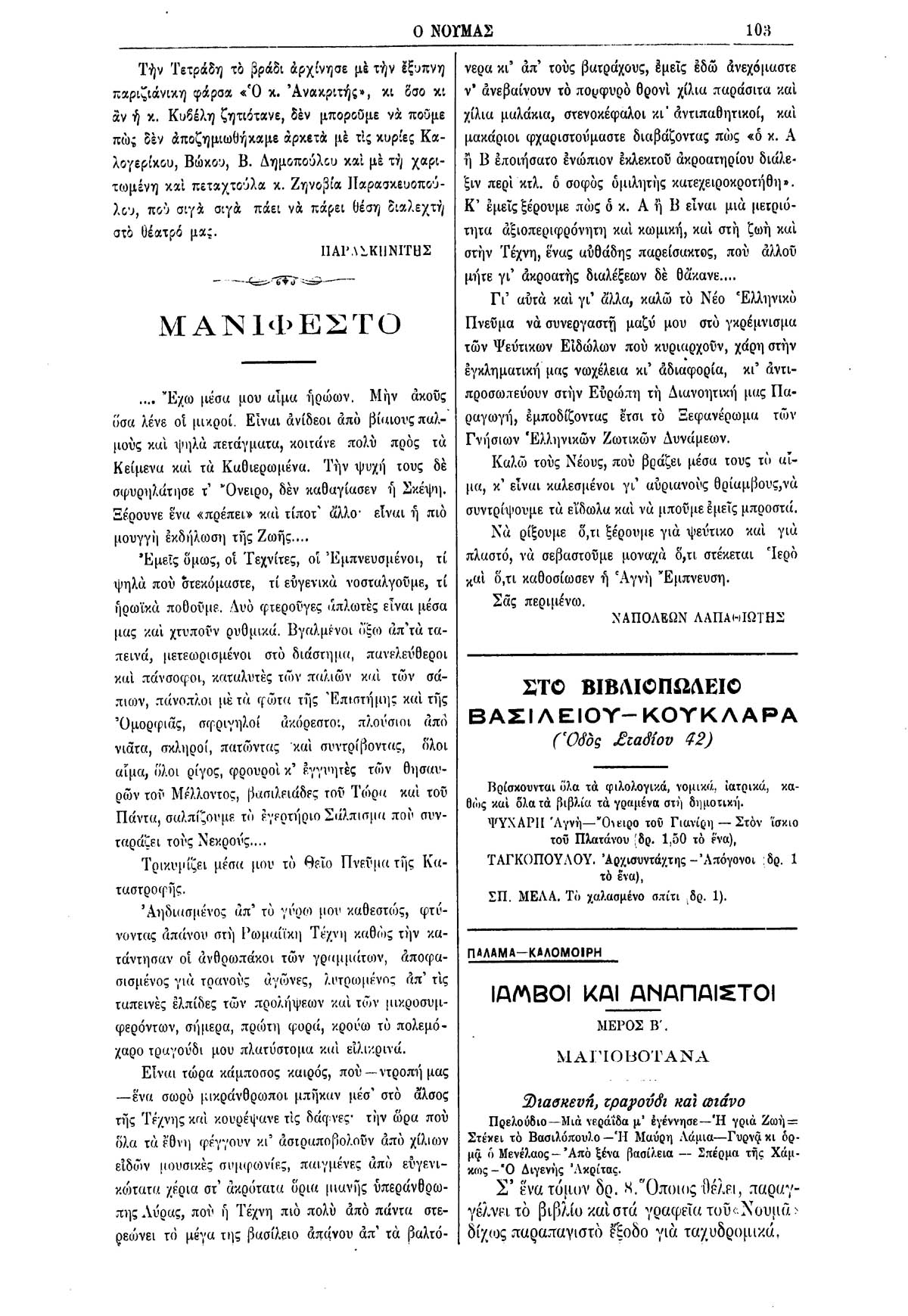14. Παύλος Νιρβάνας, «Οι νέοι», Νέα Ελλάς, 23/5/1914.
