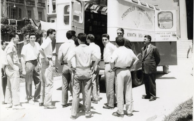 Κινητή Βιβλιοθήκη Υπουργείου Εθνικής Παιδείας, 1957. ΓΑΚ, αρχείο Γενικής Γραμματείας Τύπου και Πληροφοριών.