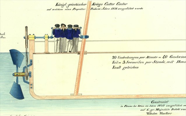 Σχέδιο πλοίου Kάστωρ, 1837. ΓΑΚ, αρχείο Ανακτόρων Όθωνος.