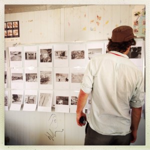 Photographer Michael Christopher Brown looking at the group photo exhibition by teenagers in Za’atari refugee camp.