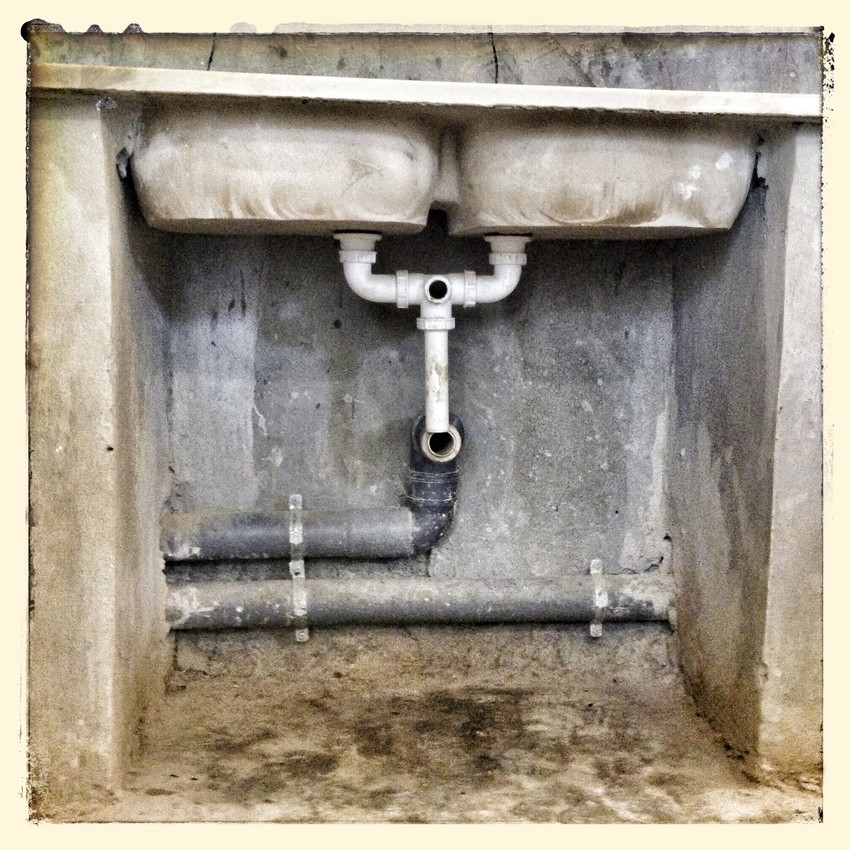 View of the communal sinks in the kitchen area of Za’atari refugee camp.