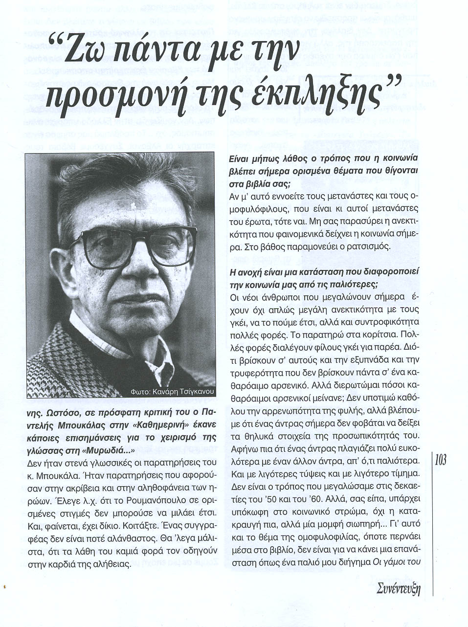 5. Συνέντευξη στη Λίνα Ρόκου, με αφορμή την έκδοση του τελευταίου του βιβλίου, Ο θησαυρός του χρόνου