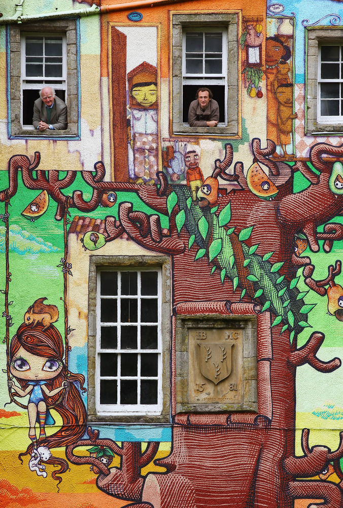 Το 2007, ο Πάτρικ Μπόιλ, Κόμης της Γλασκώβης, πληροφορήθηκε ότι έπρεπε να γκρεμίσει την τσιμεντένια πρόσοψη που είχε προσθέσει το 1950 στο σπίτι του — κι όταν λέμε «σπίτι του», εννοούμε τον Πύργο Κέλμπουρν, ένα κτίσμα του 13ου αιώνα, πενήντα χιλιόμετρα από τη Γλασκώβη. Κατόπιν προτροπής του γιου του, αποφάσισε να βάψει τον τσιμεντένιο τοίχο προτού τον κατεδαφίσει, κι έτσι ανέθεσε στους βραζιλιάνους καλλιτέχνες Nina Pandolfo, Nunca και Os Gêmeos να καλύψουν το κάστρο με πολύχρωμα ψυχεδελικά καρτούν.