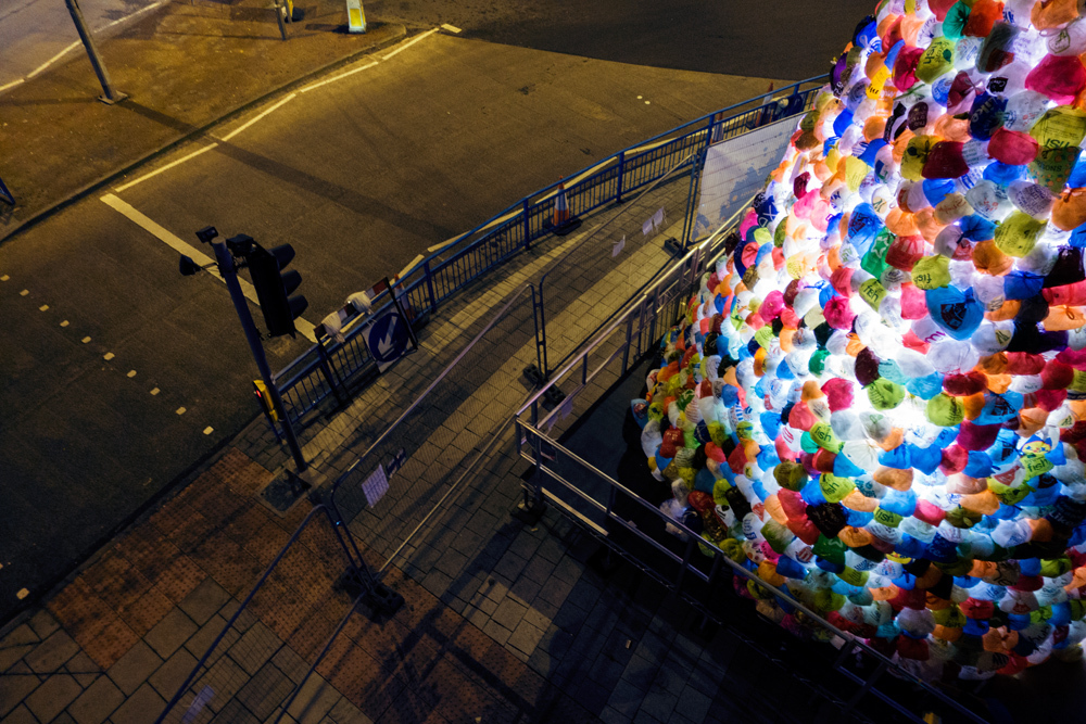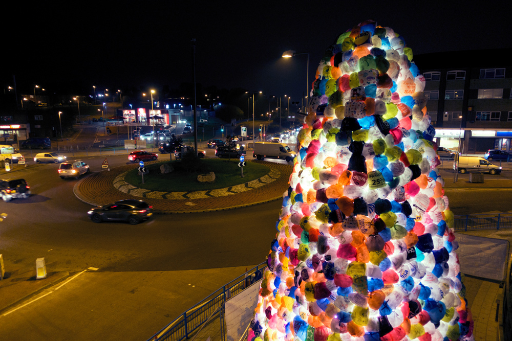 Φέτος, η Luzinterruptus, όπως όλα τα τελευταία χρόνια, έστησε και πάλι τη χριστουγεννιάτικη εγκατάστασή της, τούτη τη φορά σε μια βιομηχανική πόλη στο Staffordshire της Αγγλίας, που ονομάζεται Stoke on Trent. Οι καλλιτέχνες της ομάδας στρατολόγησαν τη γειτονιά προκειμένου πρώτα να τους δωρίσουν τις πλαστικές σακούλες τους για το έργο, κι έπειτα να τους βοηθήσουν στην τοποθέτηση. Έντεκα ημέρες αργότερα είχαν συγκεντρωθεί περίπου 2.000 σακούλες και τότε στήθηκε το έξι μέτρα ψηλό, «φωτοβόλο δέντρο» —ως μια εύστοχη παραβολή για τον μεταδοτικό καταναλωτισμό που μας καταλαμβάνει τέτοιες μέρες κάθε χρόνο— στη συμβολή δύο οδών, μπροστά από το δημοτικό ιατρικό κέντρο.