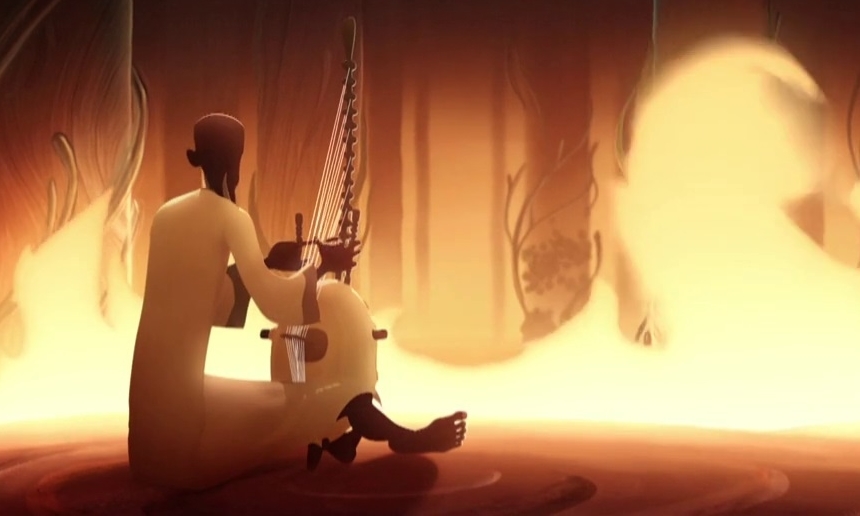 Ένας μουσικός θεραπεύει ένα άρρωστο δάσος παίζοντας κόρα (αφρικανική άρπα).