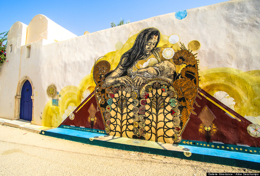 6. Στη νήσο Τζέρμπα, τον μονόκερο ακολούθησε ένα μεγαλύτερο πρότζεκτ, το Djerbahood, για το οποίο συνεργάστηκαν δώδεκα καλλιτέχνιδες από όλο τον κόσμο, προκειμένου να μεταμορφώσουν το Εριάντ.