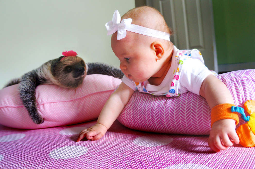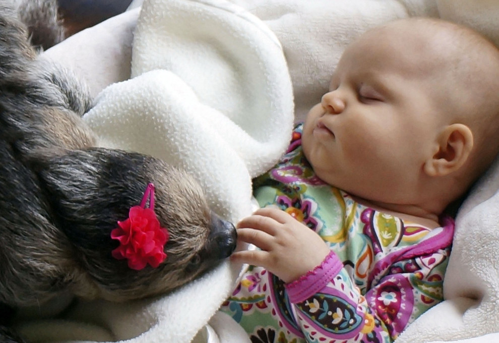 Στο βίντεο που ακολουθεί, βλέπουμε μια τέτοια αρμονική συμβίωση: η Άλια, πέντε μηνών, μεγαλώνει παρέα με την Ντέιζι τον βραδύποδα. Και είναι αχώριστες.