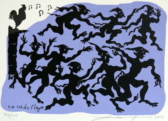 Αυτά για τους καλικάντζαρους και τη νεοελληνική μυθολογία. Μένει ν’ αναρωτιόμαστε μόνο καμιά φορά, αν στον αιώνα του Διαδικτύου και των McDonald’s αξίζει τον κόπο να μιλάμε για καλικαντζάρους. Όπως και να ‘χει όμως το πράγμα, εσείς φροντίστε να βάλετε κόσκινο στην καμινάδα, ώστε οι καλικάντζαροι που θα θελήσουν να σας επισκεφθούν να απορροφηθούν μέχρι το λάλημα του πρώτου πετεινού στην προσπάθειά τους να μετρήσουν του κόσκινου τις τρύπες κι έτσι να μην σας κατουρήσουν τη φωτιά, να μην σας μαγαρίσουν τις τροφές και τα μελομακάρονα, να μην ανα-στατώσουν το σπίτι απ’ άκρου εις άκρον.