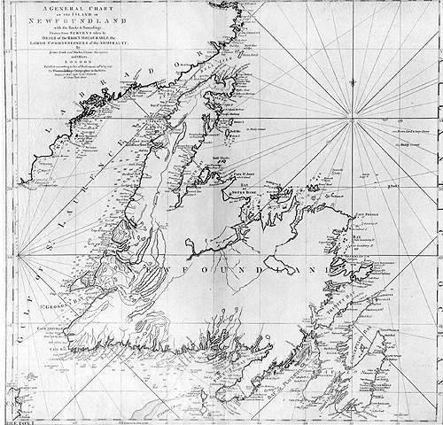 Χάρτης της Νέας Γης στον Καναδά του Κουκ