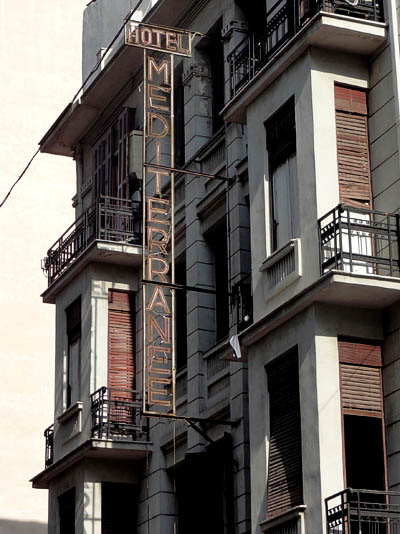 Αρχικά, ήθελα να δω το παλιό Εφετείο, στην οδό Σωκράτους, που όταν χτίστηκε στα τέλη της δεκαετίας του 1950, ήταν το ξενοδοχείο Ambassadeur. Τίποτε δεν θυμίζει ότι εκεί υπήρχε η οικία Θεοτόκη, από τα πιο ρομαντικά σπίτια της Αθήνας, σχεδιασμένο από τον Κλεάνθη. Αλλά, ούτως ή άλλως, όλη η περιοχή μοιάζει χωρίς χυμούς, έχει μια αύρα αναμονής και παράδοξης ακινησίας. Το παλιό Εφετείο, σε σχέδια του αρχιτέκτονα Σπύρου Στάικου, παραμένει φάντασμα. Όπως και το Mediterranean, το μεσοπολεμικό ξενοδοχείο στη γωνία Βερανζέρου και Σωκράτους, κτίριο του αρχιτέκτονα Βασίλη Τσαγρή. Το είχα φωτογραφήσει τελευταία φορά το 2008, κι έκτοτε έχει ερειπωθεί.