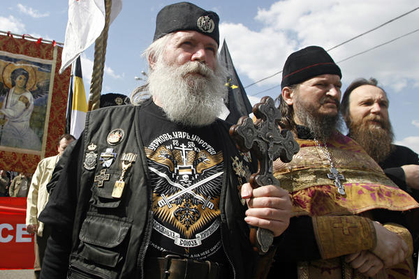 Φωτό εξωφύλλου: Ο Αλεξάντρ Ντούγκιν (ο τελευταίος δεξιά) σε διαδήλωση στη Μόσχα (2008)