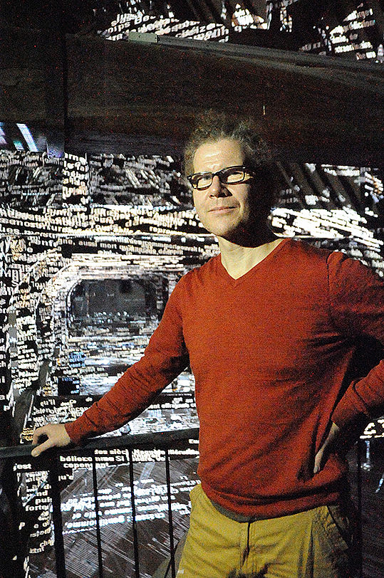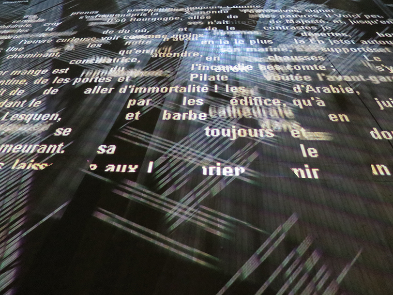 Για τα εγκαίνια του μουσείου, ο βρετανός καλλιτέχνης Charles Sandison δημιούργησε μια υποβλητική ψηφιακή εγκατάσταση στον επάνω όροφο, με προβολή λέξεων και φράσεων που παραπέμπουν σε πρόσωπα και πράγματα από την ιστορία του κτηρίου. Ο τίτλος του έργου: Axis Mundi — ο Άξονας του Κόσμου. Πρωτοπόρος της ψηφιακής τέχνης, ο Sandison ανέπτυξε ένα δικό του πρόγραμμα που ελέγχει τη δημιουργία, την εμφάνιση και την κίνηση των λέξεων. Ο Sandison ειδικεύεται σε έργα που συνομιλούν με τον χώρο στον οποίο παρουσιάζονται — μερικά από τα περασμένα πρότζεκτ του παρουσιάστηκαν στο Musée du Quai Branly, στο Grand Palais στο Παρίσι, στο Grande Manege στη Μόσχα κ.ά.