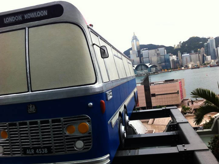 Να σημειώσουμε ότι το λεωφορείο δεν έχει απλώς τοποθετηθεί στην άκρη της ταράτσας· όντως ταλαντεύεται, μέχρι γωνία 12 μοιρών, αφού έχει κατασκευαστεί σχετικός μηχανισμός. Επίσης, μπροστά (δεν φαίνεται από τον δρόμο, μόνο από τους επισκέπτες του roof garden του ξενοδοχείου) γράφει τη διαδρομή του: «LONDON KOWLOON».