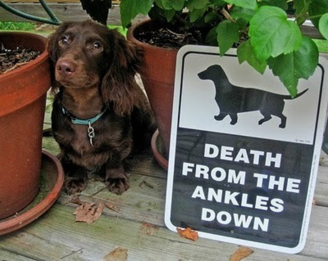Πώς προειδοποιεί κανείς ανυποψίαστους περαστικούς (ή και κακόβουλους επισκέπτες) πως καλά θα κάνουν να προσέχουν διότι καραδοκεί ο τρόμος σε τετράποδη μορφή; Και κυρίως, πώς το κάνεις όταν κι εσύ ο ίδιος δεν πιστεύεις καθόλου μα καθόλου ότι ο σκύλος σου είναι ικανός να βλάψει έστω και κουνούπι; Απάντηση: χρησιμοποιείς μια από τις παρακάτω ταμπέλες, ποντάροντας στην έκπληξη — ή στα νευρικά γέλια όσων πλησιάζουν.