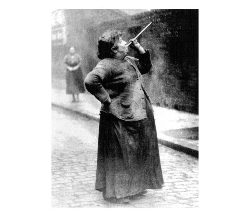 Λονδίνο, Μπρέντον στριτ, αρχές 20ού αιώνα: Μια από τις πρώτες ανάγκες που προέκυψαν με τη βιομηχανική επανάσταση ήταν να βρεθεί τρόπος να ξυπνάνε οι εργάτες για να πάνε στη δουλειά εγκαίρως. Ξυπνητήρια δεν υπήρχαν ακόμα και κόκορες δεν υπήρχαν πια — δηλαδή υπήρχαν, όχι όμως στις εργατικές συνοικίες. Έτσι, προέκυψε στην Αγγλία και στην Ιρλανδία το επάγγελμα του «ξυπνητή» ή «αφυπνιστή» (knocker-up ή knocker-upper, στα αγγλικά)· μια σύντομη περιγραφή του, βρίσκουμε στις Μεγάλες προσδοκίες του Ντίκενς (1860-61). Κατά κανόνα, τη δουλειά αυτή έκαναν ηλικιωμένοι, κυρίως άντρες αλλά και γυναίκες, και πληρώνονταν λίγες πένες τη βδομάδα. Οι πελάτες είχαν κάνει από πριν μια σταθερή συνεννόηση ή έγραφαν την επιθυμητή ώρα αφύπνισης σε ένα χαρτί στο παράθυρο. Οι μεγάλες βιομηχανίες συνήθως πλήρωναν οι ίδιες τους knocker-ups ώστε να είναι σίγουρες ότι θα ξυπνήσουν οι εργάτες τους. Ενίοτε βοηθούσαν οι αστυνομικοί, στην πρωινή τους περιπολία. Οι knocker-ups χτυπούσαν τις πόρτες με ένα ραβδί, που ήταν αρκετά μακρύ ώστε να φτάνει και στα παράθυρα του πρώτου ορόφου, και δεν πήγαιναν στο επόμενο σπίτι αν δεν σιγουρεύονταν ότι οι ένοικοι του προηγούμενου σηκώθηκαν. Η συγκεκριμένη κυρία, η Μαίρη Σμιθ, ήταν η knocker-up της οδού Μπρέντον στο Λονδίνο. Πληρωνόταν έξι πένες τη βδομάδα ανά σπίτι και χρησιμοποιούσε το ευφυές σύστημα του φυσοκάλαμου, με το οποίο έριχνε μπιζέλια στα ψηλά παράθυρα (δεν είναι γνωστό αν το επινόησε η ίδια ή το χρησιμοποιούσαν και άλλοι συνάδελφοί της). Το επάγγελμα του knocker-up άνθισε στη διάρκεια του 19ου αιώνα και άρχισε να φθίνει στον 20ό, αν και σε ορισμένες βιομηχανικές πόλεις, όπως το Μάντσεστερ, το συναντούσες μέχρι και στη δεκαετία του ’50. Η φωτογραφία προέρχεται από το βιβλίο του Philip Davies Lost London: 1870-1945.