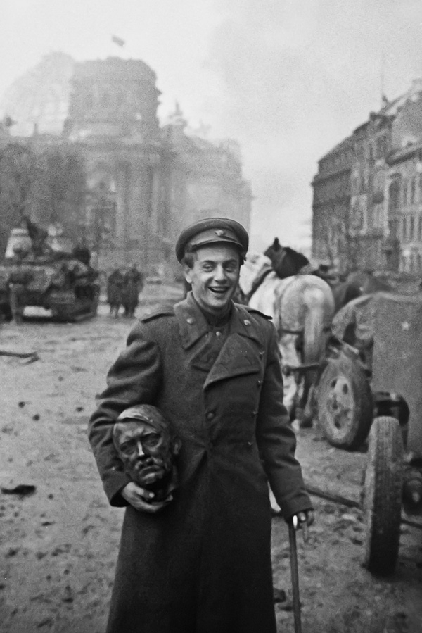 Φτάνει μαλλον στις 30 Απριλίου και μαθαίνει οτί το Ράιχσταγκ έπεσε. Ο Στρατάρχης Ζούκοφ έχει βγάλει ήδη ανακοινωθέν. Δεν απελπίζεται, πρέπει να φτάσει στην πρώτη γραμμή, η Φωτογραφία δεν εχει βγει ακόμη, μια μέρα πριν, μια μέρα μετά, τι σημασία έχει. Τότε οι φωτογραφίες δεν είχαν «ψηφιακό αποτύπωμα», η ημερομηνία λήψης τους ήταν κατά δήλωση —και κατ’ επίκληση— του φωτογράφου τους. Αυτό που δεν ξέρει είναι ότι ο Καζάκος στρατιώτης Ρακιμιζάμ Κοσκαρμπάγιεφ έχει σκαρφαλώσει στις 10 το βράδυ της ίδιας μέρας στην οροφή του Ράιχσταγκ κι έχει βάλει τη σημαία της μονάδας του στο στέμμα της Γερμανίας, ενός αγάλματος που δεσπόζει στον τρούλο. Αλλά ειναι βράδυ, δεν βγαίνει καμιά φωτογραφία, την άλλη μέρα το πρωί Γερμανοί ακροβολιστές πυροβόλουν και ρίχνουν τη σημαία. (Ο Ρακιμιζάμ δεν θα παρει ποτέ τον Χρυσό Αστέρι του Κόκκινου Στρατιώτη που δικαιούται, παρότι η σημαία του ονομάζεται επίσημα το Λάβαρο της Νίκης. Είναι, λέει, από μπουρζουάδικη οικογένεια). Όχι, έχει ακόμη καιρό ο Γιεβγκένι, θα τα καταφέρει. Επίσης δεν ξέρει οτί λιγο πιο κει, σε ένα υπόγειο, την ίδια ώρα περίπου, αυτοκτονεί ο Χίτλερ. Ο πόλεμος εχει τελειώσει, πρέπει να το μάθουν κι οι Γερμανοί.