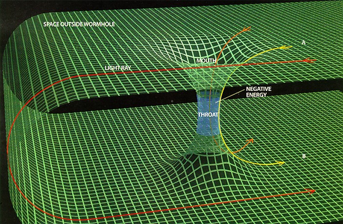 Μία από τις υποθέσεις αυτές είχε επεξεργαστεί ο ίδιος ο Αϊνστάιν με τον συνεργάτη του Nathan Rosen το 1935, και η οποία ονομάστηκε «Γέφυρα Αϊνστάιν-Ρόζεν». Το 1957, ο περίφημος Αμερικανός θεωρητικός Φυσικός John Archibald Wheeler έδωσε στις κοσμικές αυτές σήραγγες την ονομασία «σκουληκότρυπες», αλλά απέδειξε ότι δεν μπορούν να παραμείνουν σταθερές. Σύμφωνα με την άποψη αυτή, οι «μαύρες τρύπες» θα μπορούσαν να σχηματίζουν παράξενες κοσμικές σήραγγες, οι οποίες ίσως να οδηγούν σε κάποιο άλλο άγνωστο Σύμπαν, με το οποίο δεν υπάρχει καμιά άλλη επικοινωνία, ούτε και τρόπος επιστροφής.