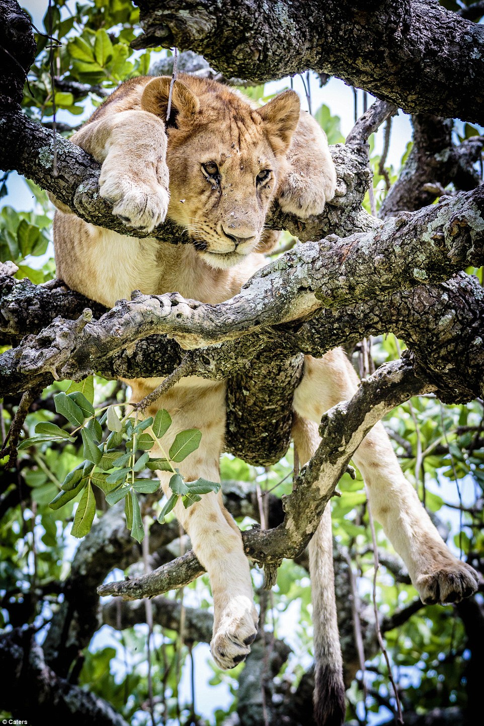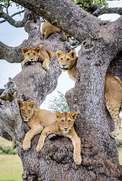 «Ήταν ένα θέαμα απίστευτο και πολύ κωμικό, καθώς αυτά τα πανέμορφα ζώα, τα λιοντάρια, προσπαθούσαν, μάλλον αδέξια, να σκαρφαλώσουν και να βολευτούν πάνω στο δέντρο. Ο οδηγός μας μας είπε ότι, λόγω των πρόσφατων βροχοπτώσεων, το γρασίδι είχε ψηλώσει πολύ και ότι τα λιοντάρια σκαρφαλώνουν στα δέντρα για να ξεφύγουν από τα έντομα που ζουν εκεί», λέει ο φωτογράφος Bobby-Jo Clow.