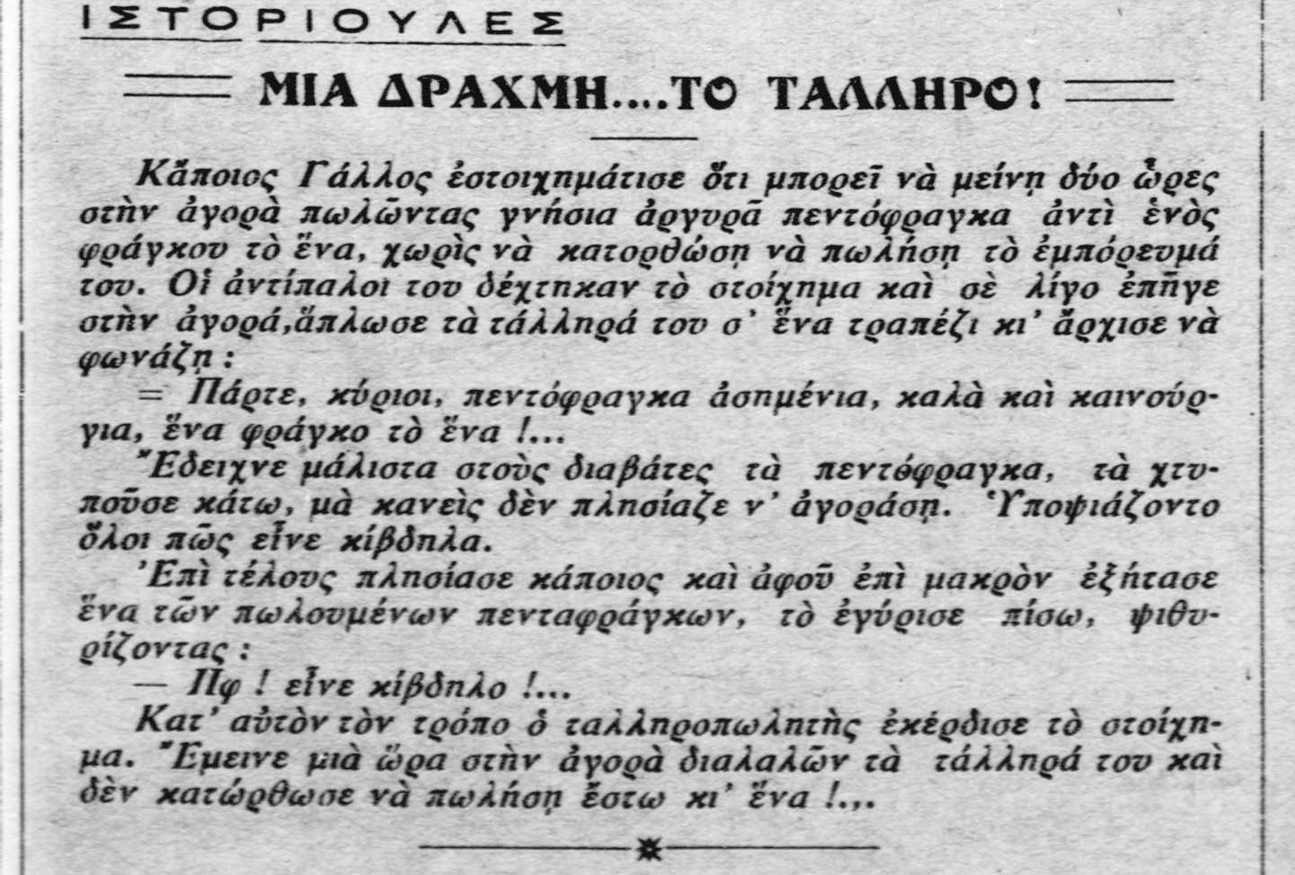 Μια διδακτική ιστορία από το περιοδικό Μπουκέτο (14/2/1926) σχετικά με την πραγματική αξία του χρήματος αλλά και τη σωστή εφαρμογή της Θεωρίας των Παιγνίων.