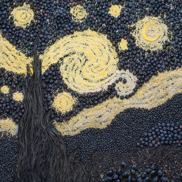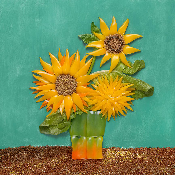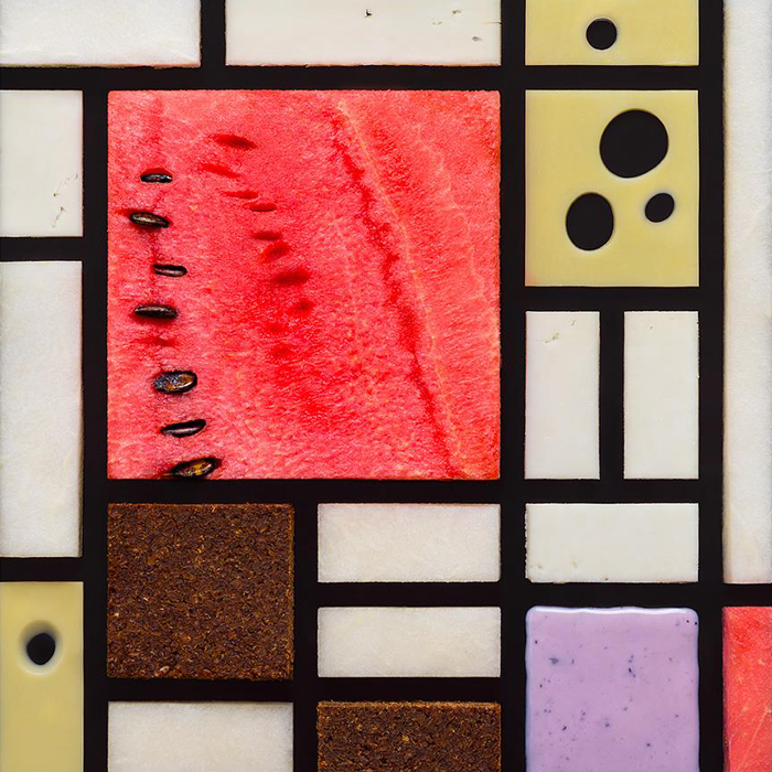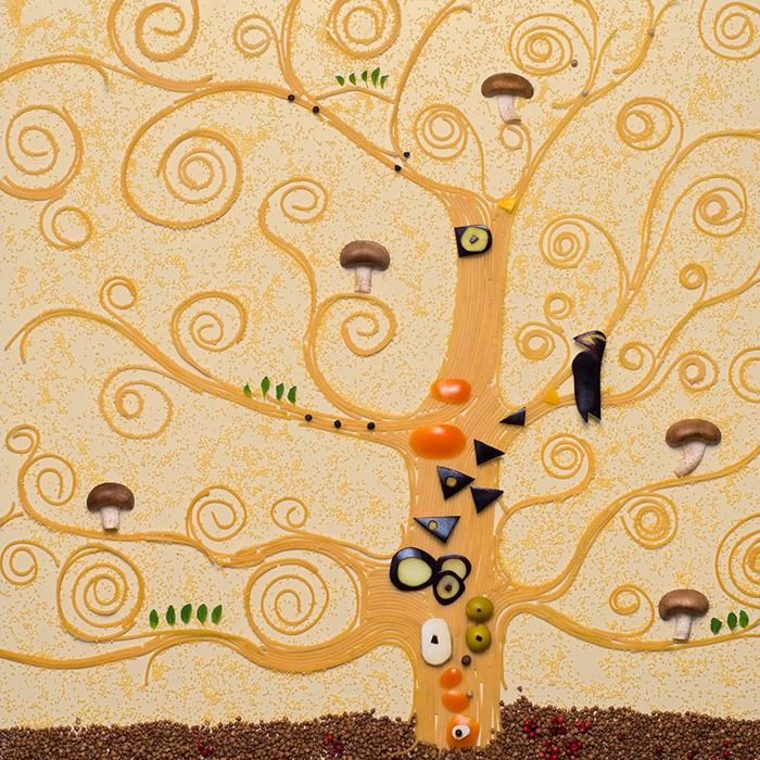 —της Stucano Closer— Είναι τα αριστουργήματα της ζωγραφικής φαγώσιμα; Όχι, αλλά μπορούν να γίνουν. Ή μάλλον, κατά κάποιον τρόπο, ήδη μπόρεσαν. Το κάπως εικονοκλαστικό αυτό project της ανάπλασης διάσημων έργων με υλικά φαγώσιμα ανήκει στη Ρωσίδα φωτογράφο και food-stylist Tatyana Shkondina. Τυριά, πιπεριές, κόκκοι πιπεριού κ.ο.κ. επιστρατεύονται για να προσδώσουν μια γαστριμαργική διάσταση στα πασίγνωστα αριστουργήματα. Και γιατί όχι, δηλαδή; Αν το φαγητό είναι τέχνη, γιατί να μην είναι και η τέχνη φαγητό; Σαλβαντόρ Νταλί, «Η εμμονή της μνήμης» (1931)