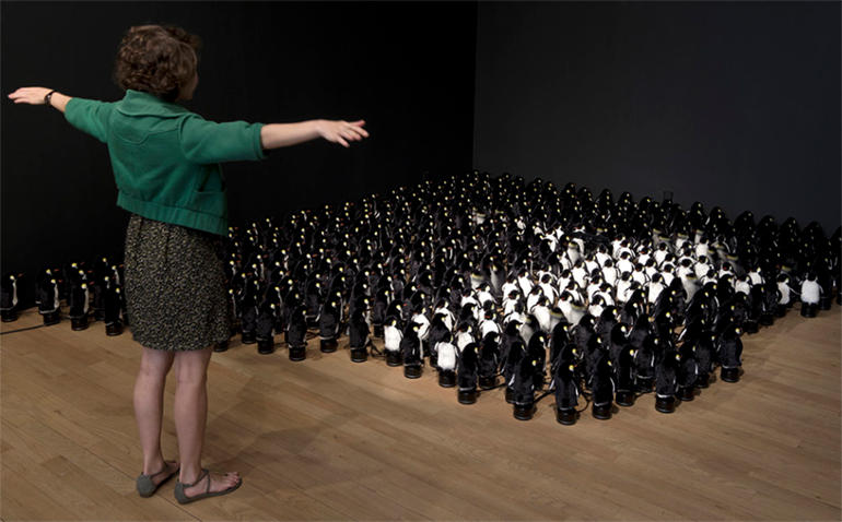 Υλικά: 450 λούτρινοι πιγκουίνοι, κινητήρες, ηλεκτρονικά συστήματα ελέγχου, αισθητήρας κίνησης xbox kinect, μικρο-υπολογιστές mac, προσαρμοσμένο λογισμικό, βάσεις από κασσίτερο.
