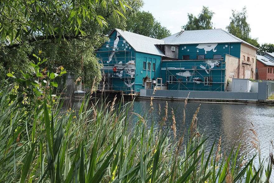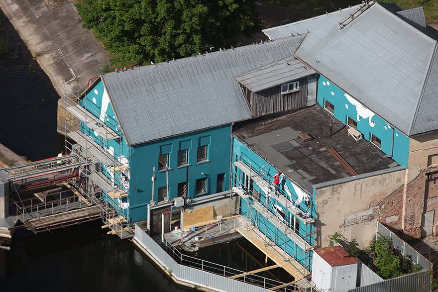Ο λιθουανός καλλιτέχνης Ray Bartkus πήγε κι έκανε μια τοιχογραφία σε ένα κτήριο πλάι στο νερό, στη Marijampolé, αλλά ζωγράφισε τα πάντα ανάποδα. Όχι, δεν το έκανε κατά λάθος (θα ήταν πολύ διεστραμμένο «λάθος», εδώ που τα λέμε) ούτε πάσχει από καμία μυστήρια διαταραχή: απλώς σκέφτηκε να φτιάξει ένα γκράφιτι στο νερό: οι κολυμβητές, οι βουτηχτές, οι κύκνοι, τα δελφίνια και τα θαλάσσια τοπία του είναι ανάποδα όταν κοιτάς τους τοίχους του κτηρίου αλλά κανονικότατα όταν κοιτάς την αντανάκλασή τους στο νερό (υπό τον όρο ότι το νερό είναι ήρεμο ή σχεδόν ήρεμο).