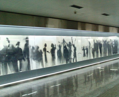 «Ουρά» (1999-2000), έργο του Νίκου Κεσσανλή στο σταθμό του μετρό στην Ομόνοια