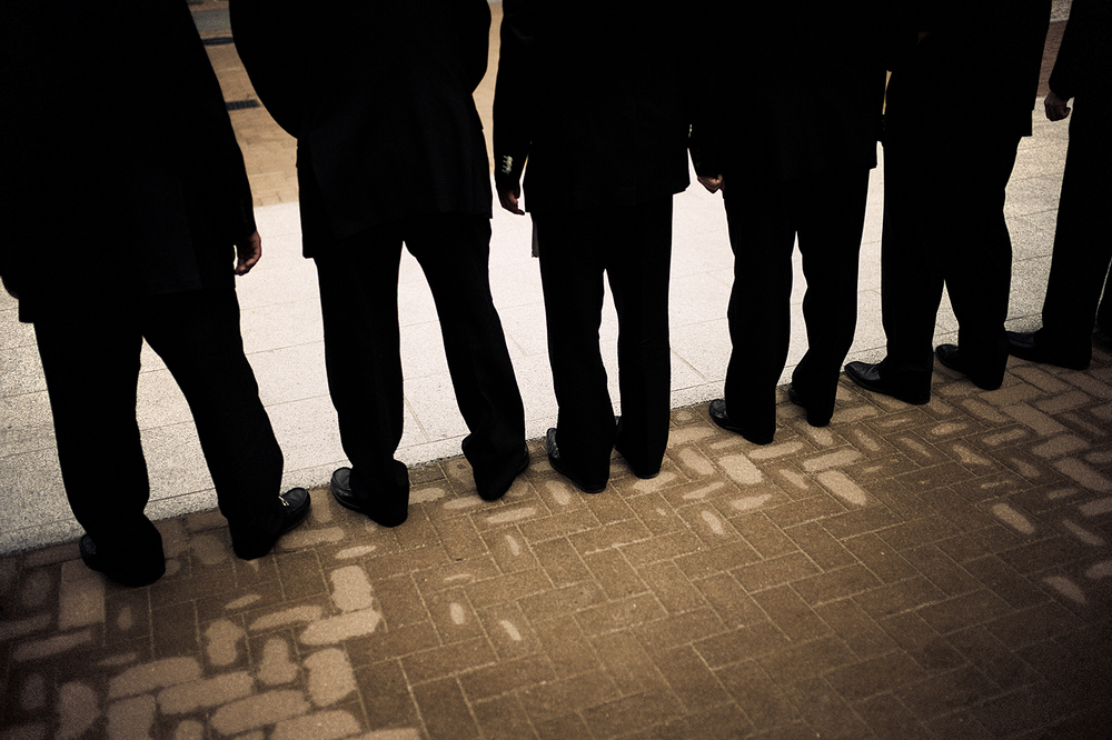 Members pose in the streets of Kabukicho, the red light district in the heart of Shinjuku, Tokyo, Japan. By always wearing tailored suits, the Yakuza attempt to spread an image of decency and conformity. But the underlying tension unmistakibly remains. Obvious influences are American gangster icons from the early 20th century, like John Dillinger – 2009