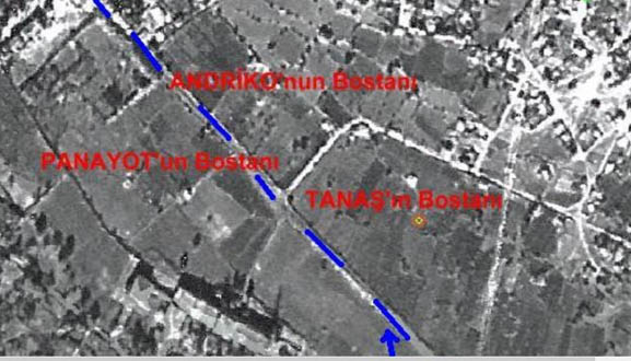 Εικόνα εξωφύλλου: αεροφωτογραφία όπου διακρίνονται το μποστάνι του Τανάς, το μποστάνι του Αντρίκου και το μποστάνι του Παναγιώτη. Η μπλε γραμμή είναι η λεωφόρος Vatan, που έγινε αργότερα και η ονομασία της σημαίνει πατρίδα.