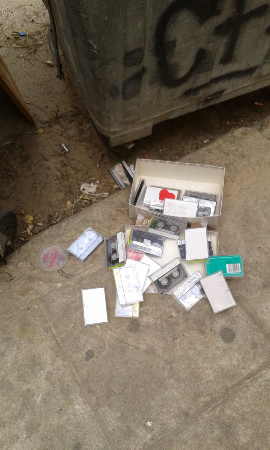 Ήμουν κάπου, ας πούμε κεντρικά στην Αθήνα, και διέσχιζα το διάσελο μεταξύ χοντρής κολόνας ΔΕΗ και σκουπιδο-κάδου, σε στενό πεζοδρόμιο. Τις πήρε το μάτι μου στα αριστερά μου, χαμηλά. Καμιά δεκαπενταριά κασέτες, από εκείνες που τις λέγαμε «άδειες», και που εγγράφαμε μέσα τους ότι θέλαμε, τραγούδια ας πούμε, ή φωνές, σημειώνοντας μετά με στυλό τους τίτλους, το περιεχόμενο, ό,τι και αν ήταν τέλος πάντων, στις λεπτές μαύρες γραμμούλες στο εσώφυλλό τους. Που το αναποδογυρίζαμε μετά και το κάναμε εξώφυλλο, ναι; Αυτές, ναι.