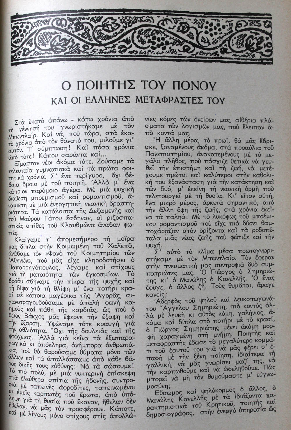 Το αφιέρωμα του dim/art στον Μπωντλαίρ επιμελήθηκε ο Γιώργος Τσακνιάς.