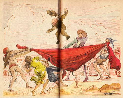 Είχε να «ανταγωνιστεί» και αναμετρηθεί βέβαια με αντίστοιχους γίγαντες της πρότερης εικονογράφησης του έργου-ογκόλιθου της παγκόσμιας λογοτεχνίας. Μια από τις ωραιότερες π.χ. εκδόσεις του βιβλίου στην ιστορία, ήταν αυτή του εκδοτικού οίκου Ibarra στην Ισπανία, το 1780, όπου μια ομάδα καλλιτεχνών είχαν στολίσει την προσπάθεια αυτή με υπέροχα σχέδια, όπου εκεί ο Δον Κιχώτης είναι πιο όμορφος, πιο καλοφτιαγμένος, πιο «ιδανικός».
