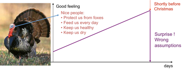 Αν βρούμε παραδείγματα μικρής χρονικής κλίμακας, η κατάσταση ζορίζει. Αυτό το έμαθε με τον σκληρότερο δυνατό τρόπο ο Vegan το αρνάκι. Με το που έβαλε λίγο σκεπτικισμό στον εμπειρισμό του, βρέθηκε απάνω στον πάγκο στου χασάπη. Ίσως να αντιμετώπιζε τη μοίρα του πιο στωικά αν ήξερε ότι την ίδια τύχη είχε και μια γαλοπούλα που ήξερε ο Bertrand Russell (1872-1970).