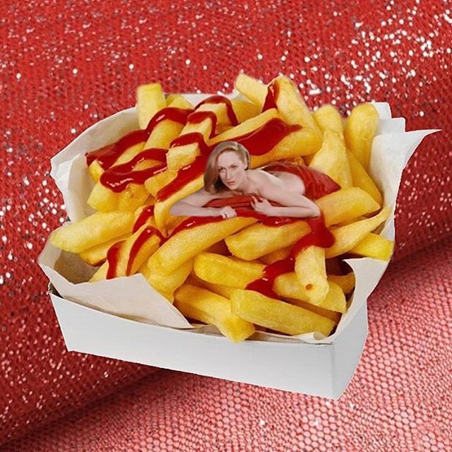 Μια ηθοποιός ονόματι Samantha Hoecherl, αποκαλύπτει η μίνι-έρευνά μου, έχει φτιάξει έναν λογαριασμό στο Instagram με τον τίτλο «tasteofstreep», όπου έχει «πειράξει» με photoshop γνωστές πόζες της κινηματογραφικής θεάς, καθώς και στιγμιότυπα από φιλμ της, με τρόπο ώστε να την εντάσσει σε διάφορα φαγητά, ανάλογα με τη συγγένεια του χρώματος ή της υφής: η Meryl αναδύεται μέσα από αυγά, κάθεται πάνω σε ψωμί του τοστ, τυλίγεται μέσα σε παγωτό, κάνει μπάνιο μέσα σε τηγανητές πατάτες φαστ φουντ, ξεπροβάλλει μέσα από χάμπουργκερ, γίνεται δροσιστικό κοκτέιλ, και πάει λέγοντας.