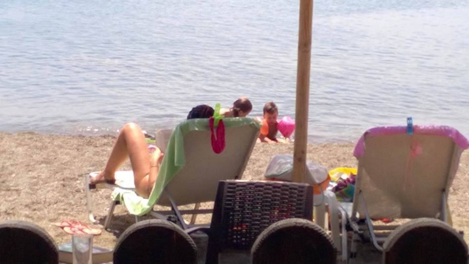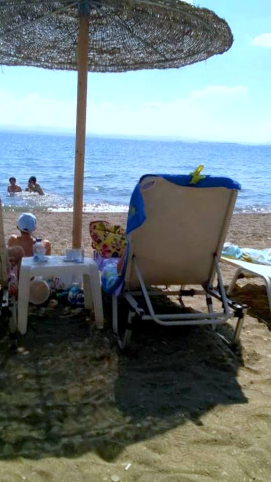 Η παραλία δεν ήταν του συρμού: ούτε τατουάζ ούτε piercing. Οικογένειες κυρίως, ελληνικές και ξένες. Αλλά ο κόσμος τόσο λιγοστός που τα παιδάκια δεν ενοχλούσαν κανέναν. Ιδανικές συνθήκες. Διαβάζαμε και ψηνόμασταν, ψηνόμασταν και διαβάζαμε. Όταν άρχισα να νοσταλγώ με σθένος το κλιματιστικό στο σπίτι, η παρέα με δελέασε με μπύρες και χταποδάκι στα κάρβουνα. Πάνω στις σπονδές ήταν που είδα την κρίσιμη λεπτομέρεια: το μανταλάκι-τοτέμ (βλ. φωτό).