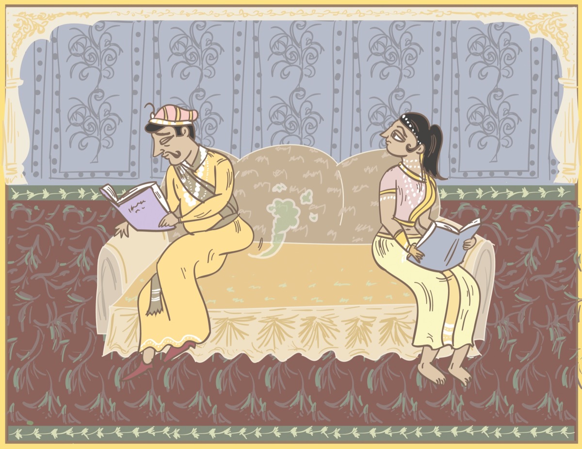 Όταν ο άνδρας και η γυναίκα έχουν φάει ινδικό και είναι τόσο σκασμένοι στο ρύζι που δεν μπορούν να συνομιλήσουν —πόσο μάλλον, να συνομιλήσουν ερωτικώς—, η στάση αυτή ονομάζεται: «Η προσάραξη των φαλαινών».